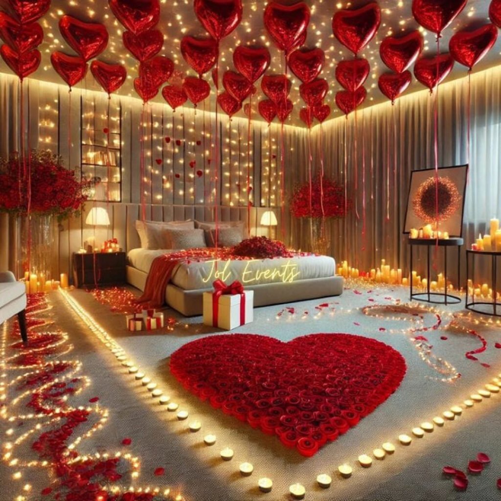 Create a love-filled ambiance with stunning Romantic Room Decorations! From heart balloons to soft lights, Balloons Decoration Ranchi makes every event special. ❤️🎈✨